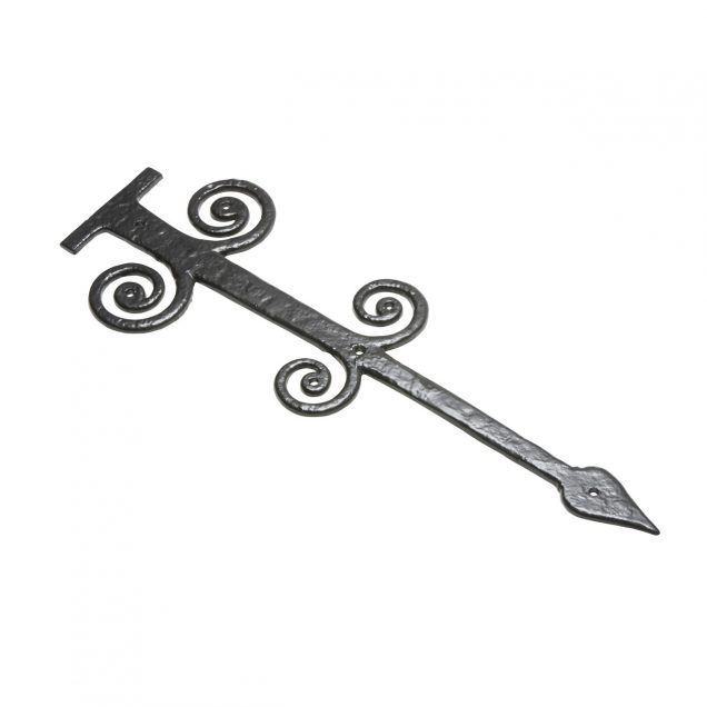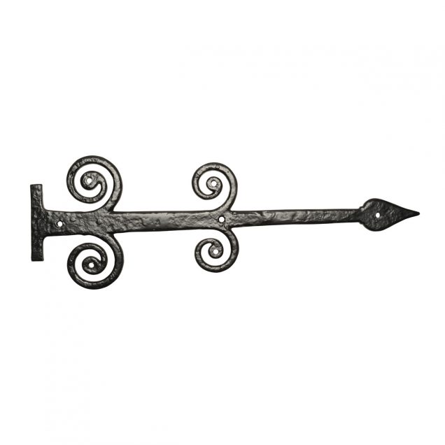 Ornate antique black malleable iron hinge front/dummy hinge. Also available in pewter and argent finish.